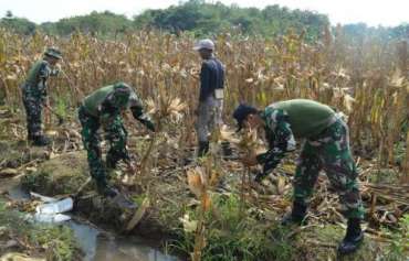 Anggota Kodim 0712 Tegal Siapkan Perarian Untuk Tanaman Jagung